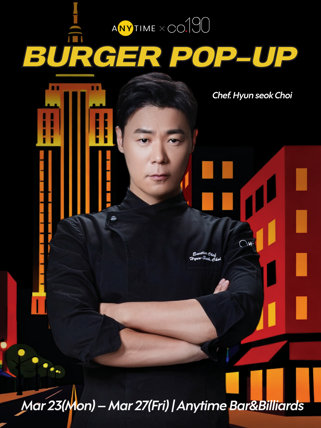 Chef Choi Hyun Seok (@crazypenne) is back, and this time, it’s all about the burger. For 5 days only, experience the masterpiece that is the 190 Burger at Anytime Bar & Billiards.