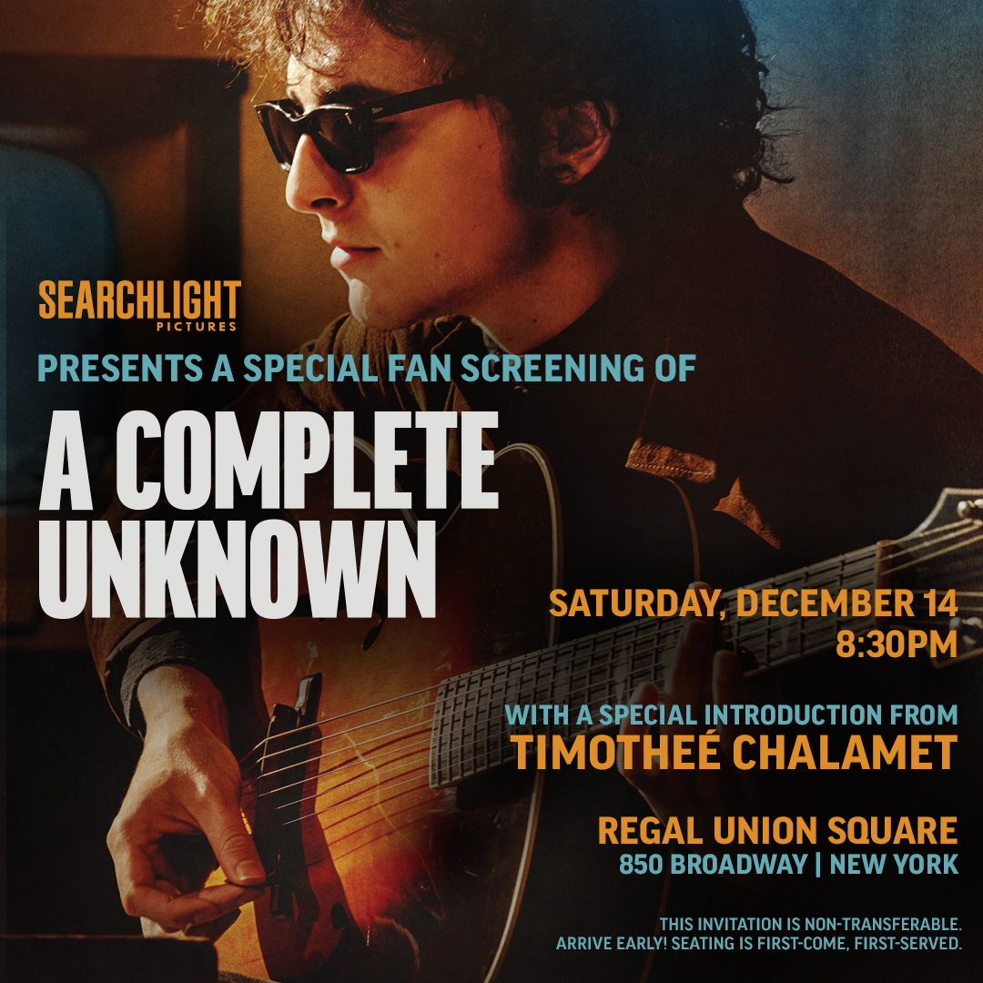 On Saturday night, there is a special fan screening of A Complete Unknown with a special introduction from Timotheé Chalamet