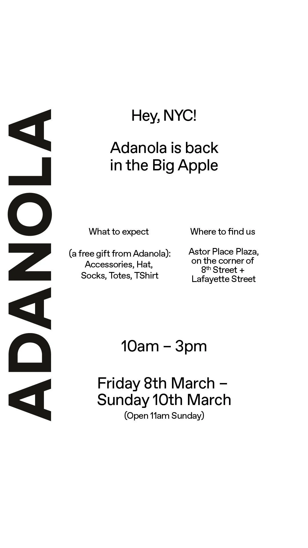 Adanola is back in the Big Apple with a pop-up in Astor Place Plaza Friday - Sunday (+ a group running event on Friday!)