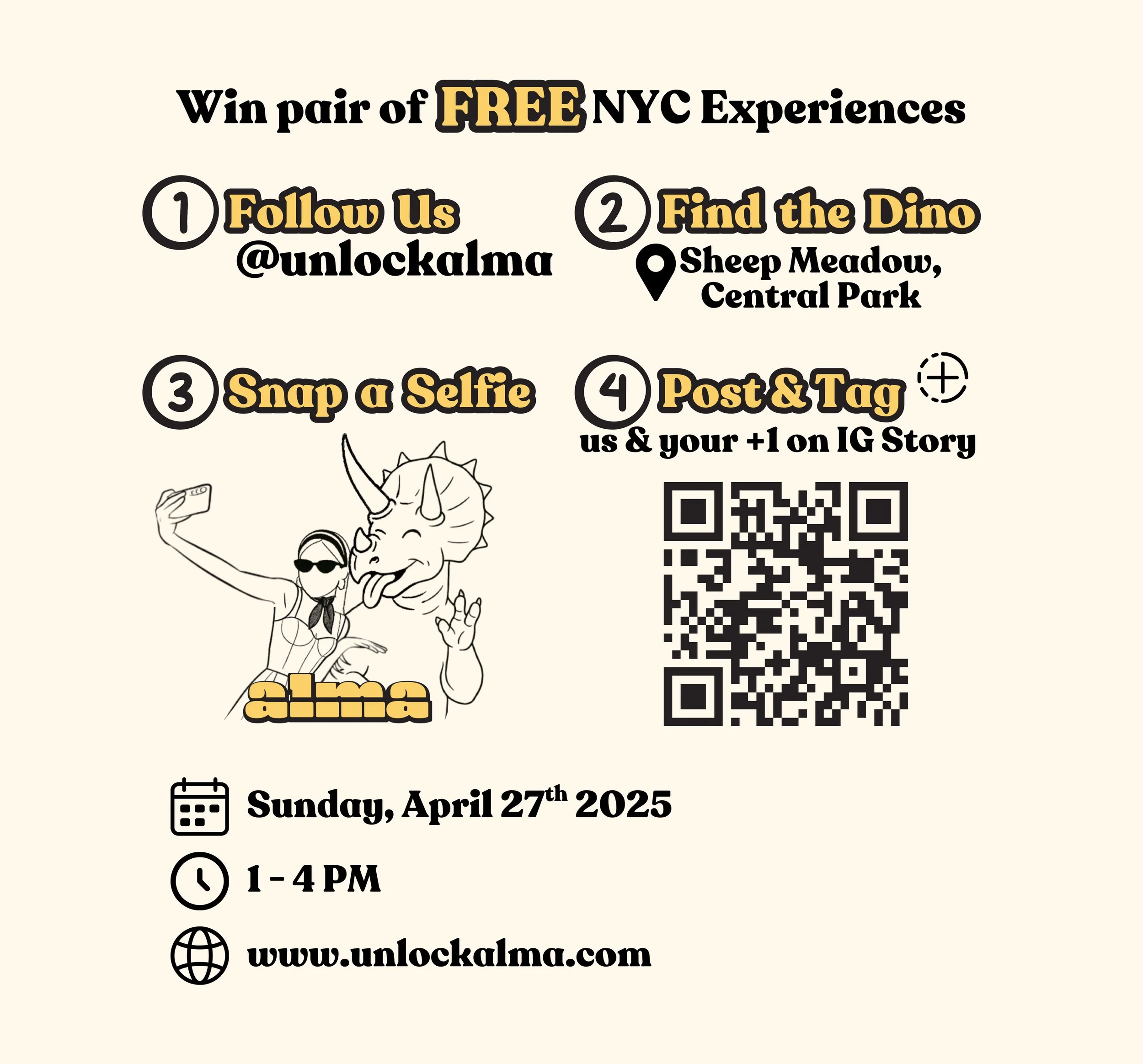 Alma Dino Hunt Giveaway π¦ - Win a pair of NYC Experiences for FREE!