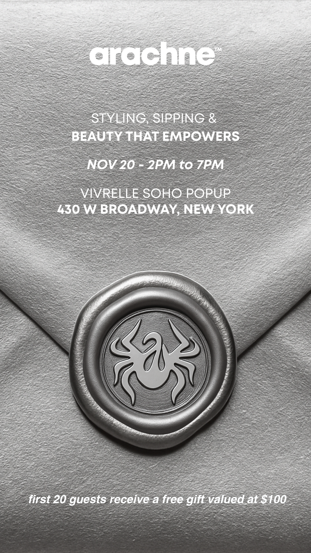 Pop In for a Little Transformation! arachne invites you to an exclusive evening of styling, sipping, and celebrating beauty that empowers.