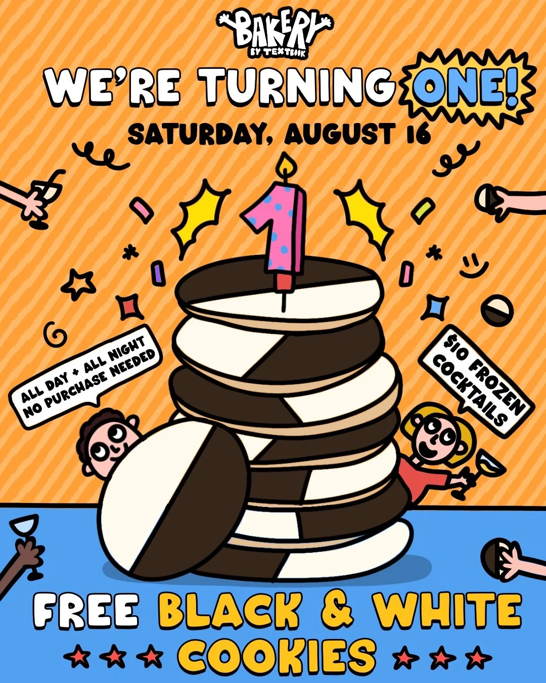 This Saturday, while supplies last, Bakery by Textbook will be giving away hundreds of these cookies as their way of saying thank you for all the love and support. No purchase necessary — just stop by, grab a cookie, and celebrate.