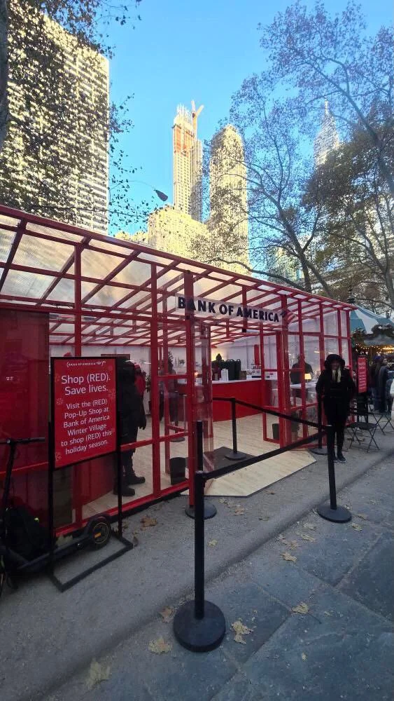 Visit the (RED) Pop-Up Shop at Bank of America Winter Village in Bryant Park.