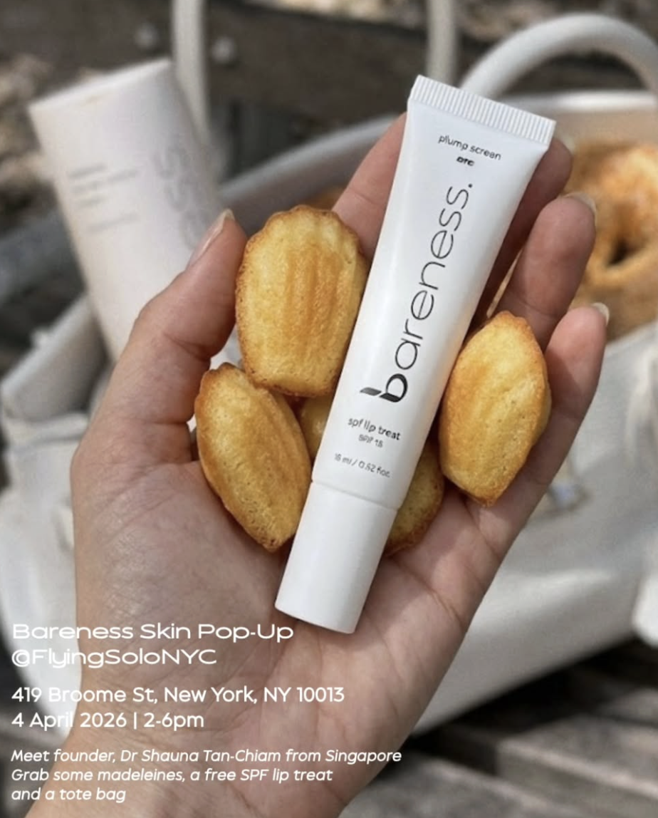 Bareness Skin is popping up April 4 at Flying Solo NYC with Madeleines, skin restoration, and that New York energy.