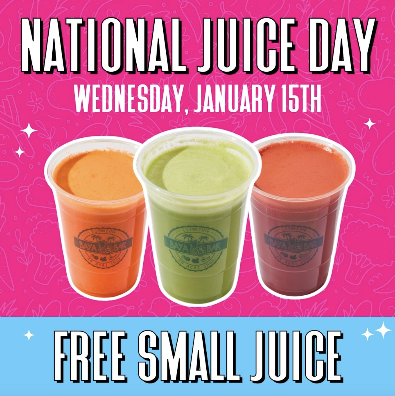 Wednesday, January 15th is National Juice Day! Baya Bar is celebrating with a FREE Small Juice for ALL Baya Rewards Members! πππ±