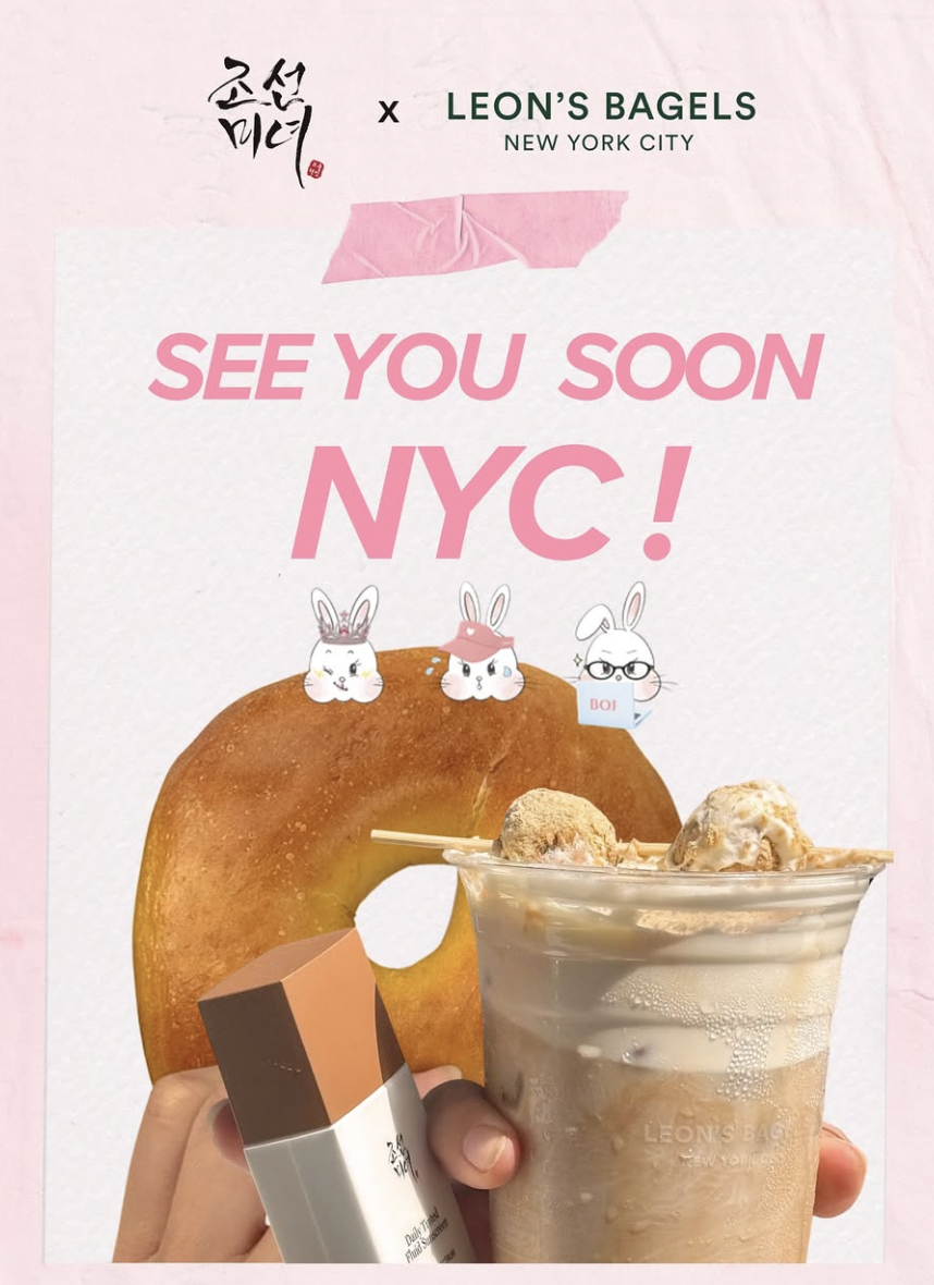 Stop by the ultimate Busy Girl Pop-Up window at Leon’s Bagels on June 12 from 8:00 am-3:00 pm and June 13-14 from 8:00 am-4:00 pm, where Leon’s + Beauty of Joseon are offering a custom menu for a limited time.