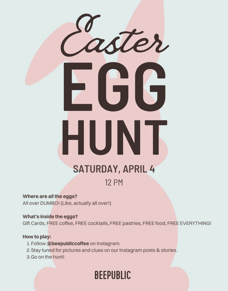 BEEPUBLIC is hosting a free Easter Egg Hunt Saturday April 4 from 12-4pm!