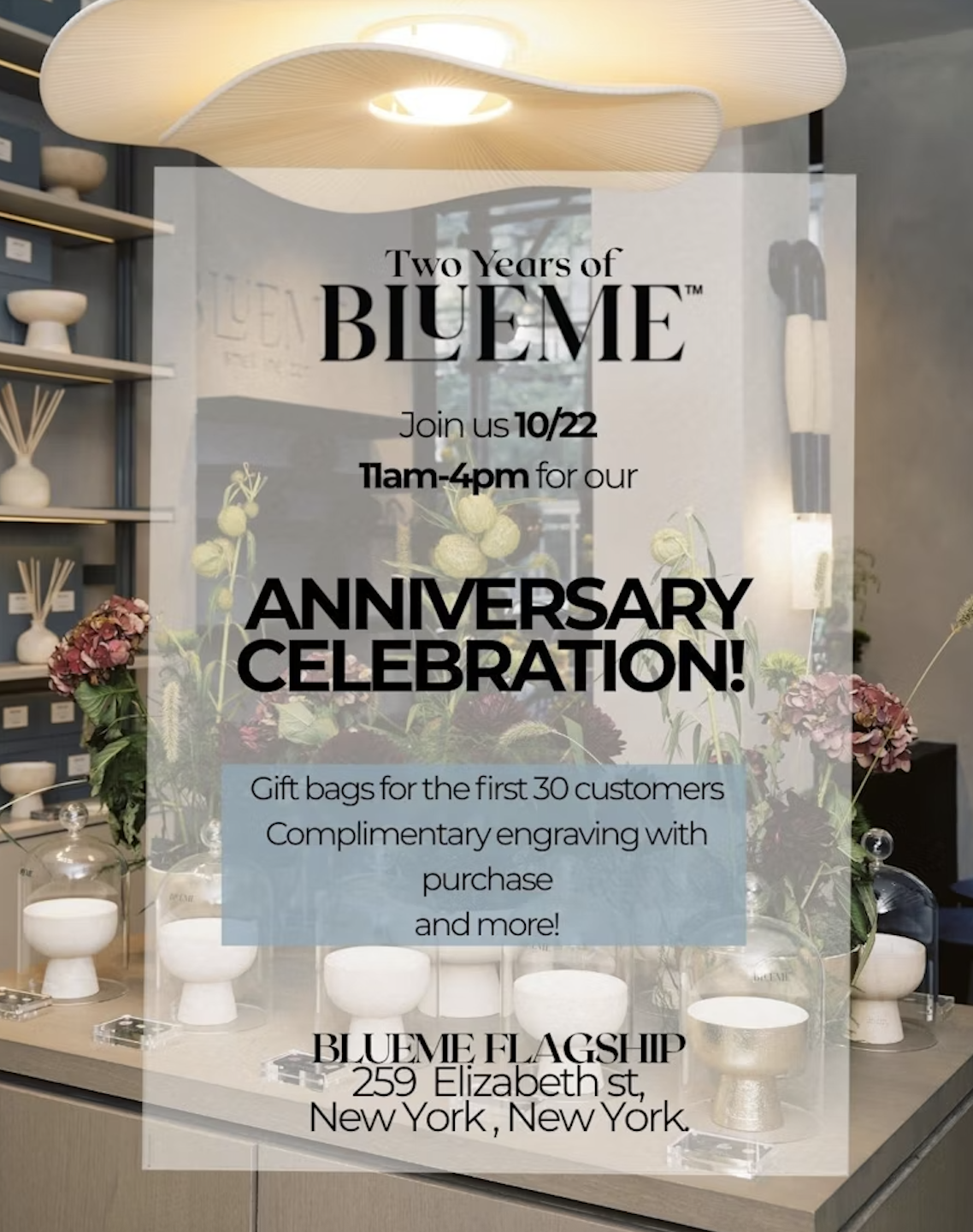 Cheers to 2 Years of Blueme! ✨ We’re celebrating two beautiful years of fragrance, design, and mindful living—and we want you to join us at our flagship boutique in the heart of NoLita, NYC! 🎉