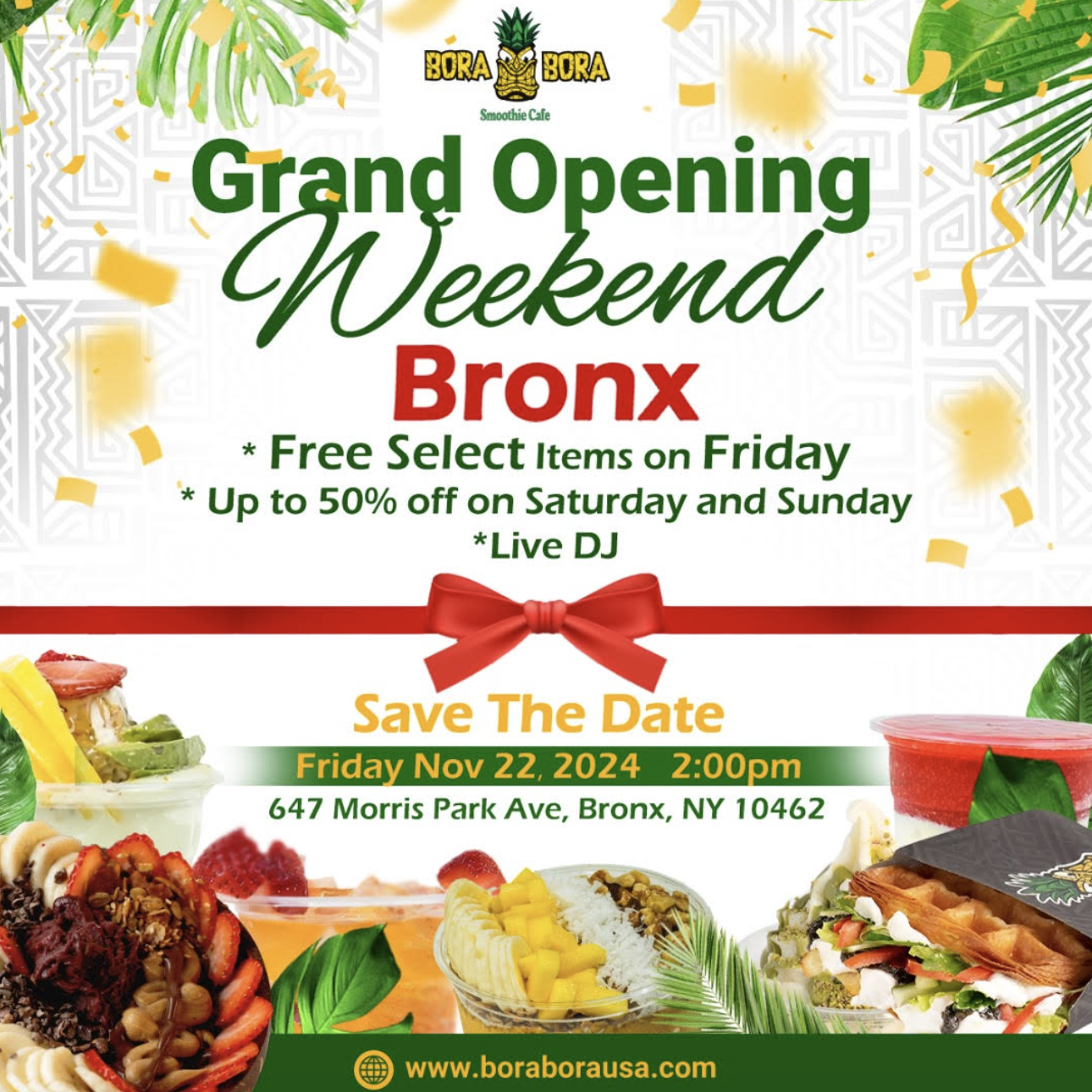 Check out Bora Bora’s other locations in all boroughs of New York City, and welcome them to the Bronx this weekend!