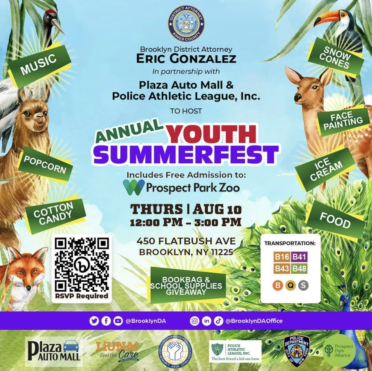Join Brooklyn District Attorney Eric Gonzalez with community partners for the annual Youth Summerfest. There will be Free Admission to the Prospect Park Zoo (must RSVP here).