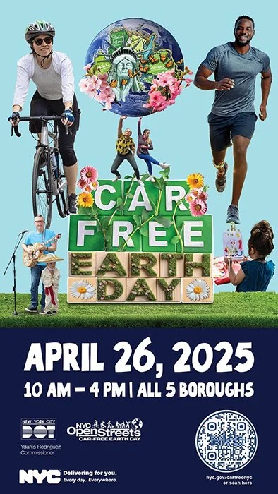 Join NYC in celebrating Car-Free Earth Day on Saturday, April 26, 2025 from 10am to 4pm. Car-Free Earth Day is an annual car-free event hosted by NYC DOT.