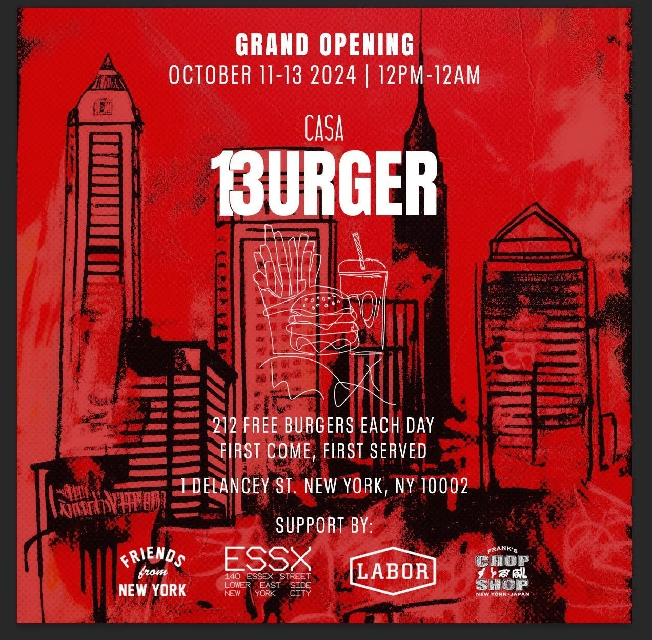 Celebrate the Grand Opening of new burger joint opening Casa 13urger this weekend!
