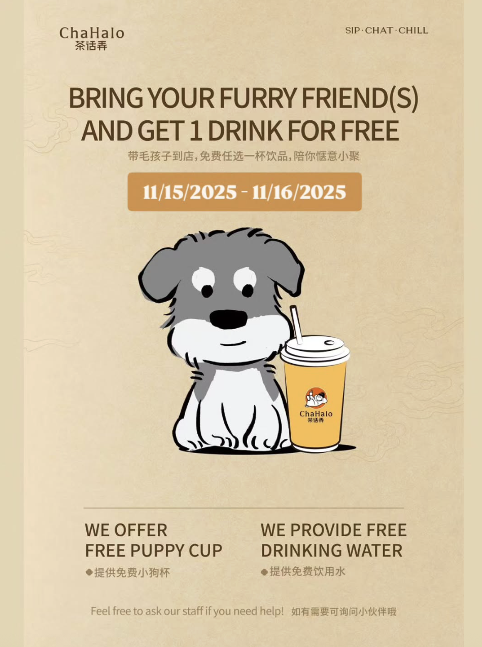 Bring your furbabies to ChaHalo for free milk tea! ๐พโจ
