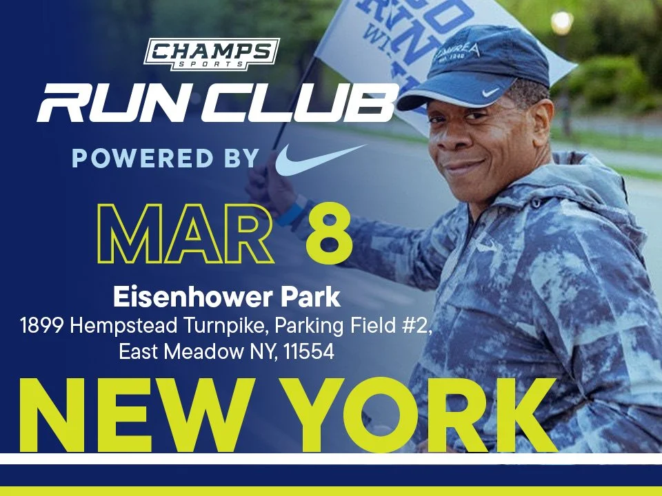 Champs Sports Run Club is heading back to New York this March, and we want YOU to join us! Mark your calendars for Saturday, March 8th, and meet us at Eisenhower Park for an unforgettable Champs Sports Run Club event powered by Nike.