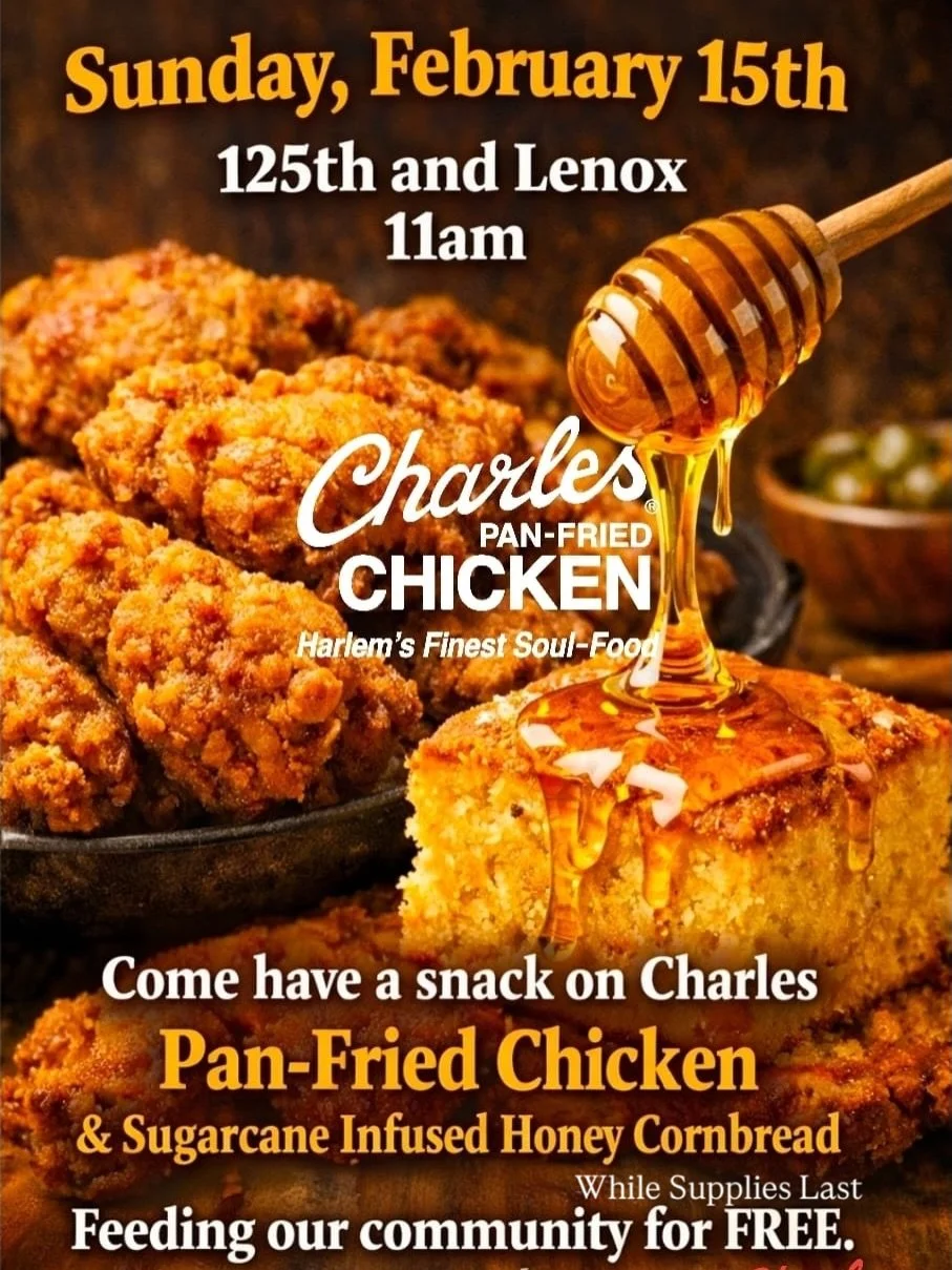 They will be on 125th and Lenox giving out pan-fried chicken and sugarcane-infused honey cornbread.