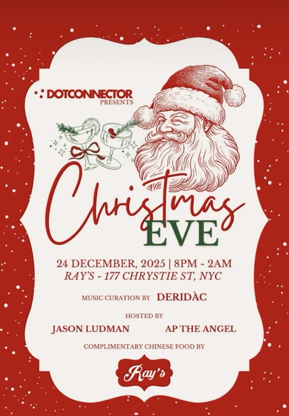 Please join DOTCONNECTOR at RAY’S (@raysbarnyc) in the Lower East Side for a Christmas Eve celebration you won’t forget!