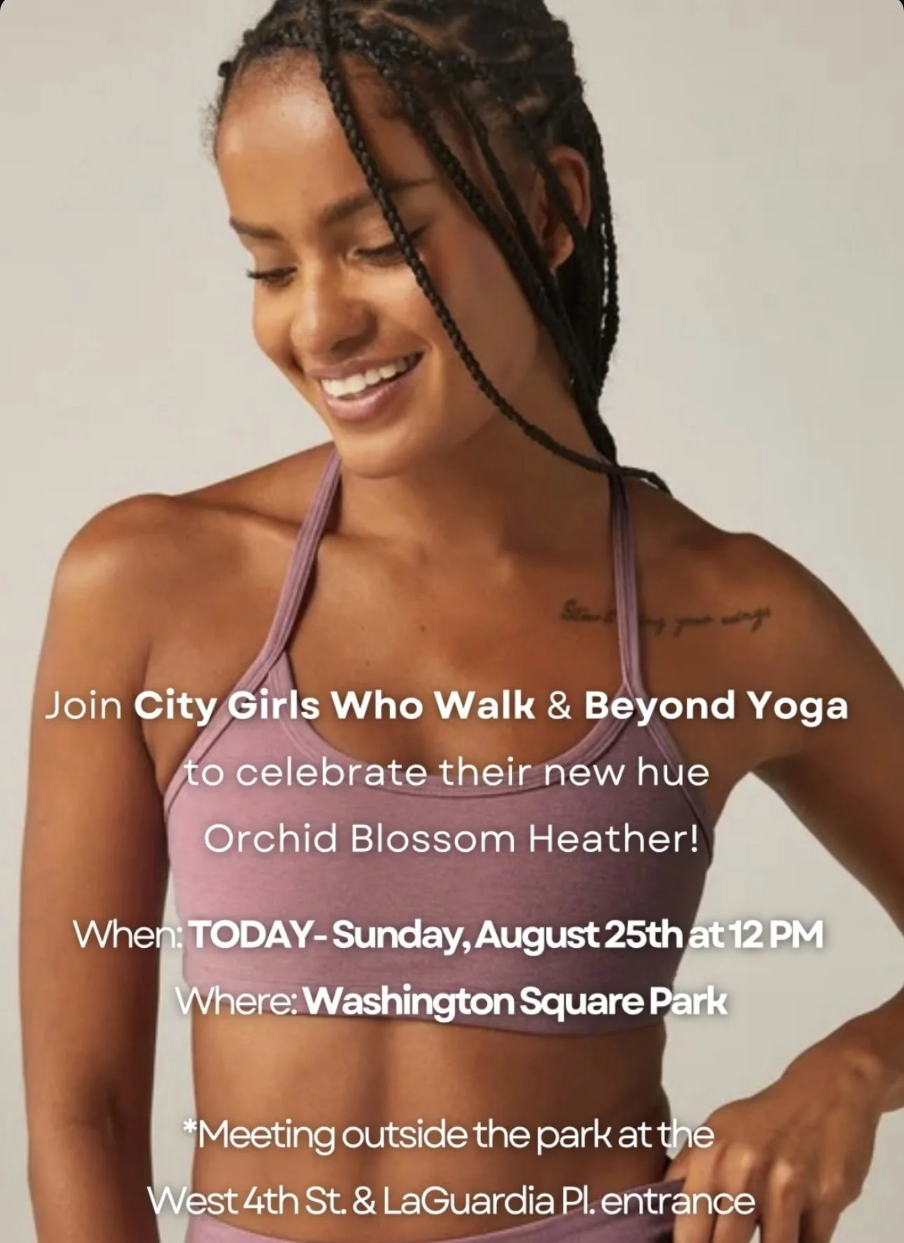 Join City Girls Who Walk & Beyond Yoga to celebrate their new hue Orchid Blossom Heather!