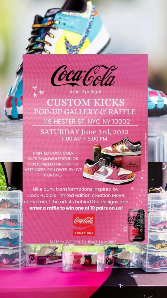 Shoe transformations of Nike Dunks inspired by Coca-Cola’s limited edition creation Move: come meet the artists behind the designs and enter a raffle to win a pair of your own!