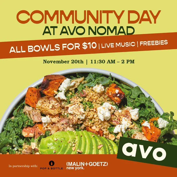 Ready for a mid-week treat? AVO NOMAD is hosting a community day with $10 bowls for lunch and free products/beverages!