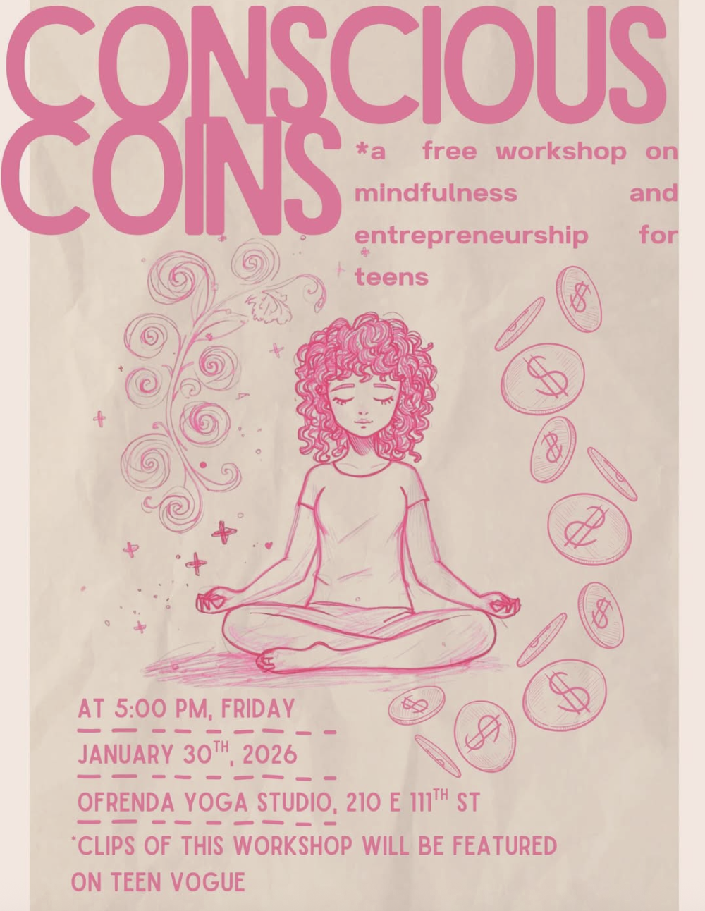 Conscious Coins is a free mindfulness + entrepreneurship workshop for teens, created to help you slow down, get clear, and learn how to move through money and ideas with intention. ๐ง๐ฝโโ๏ธ