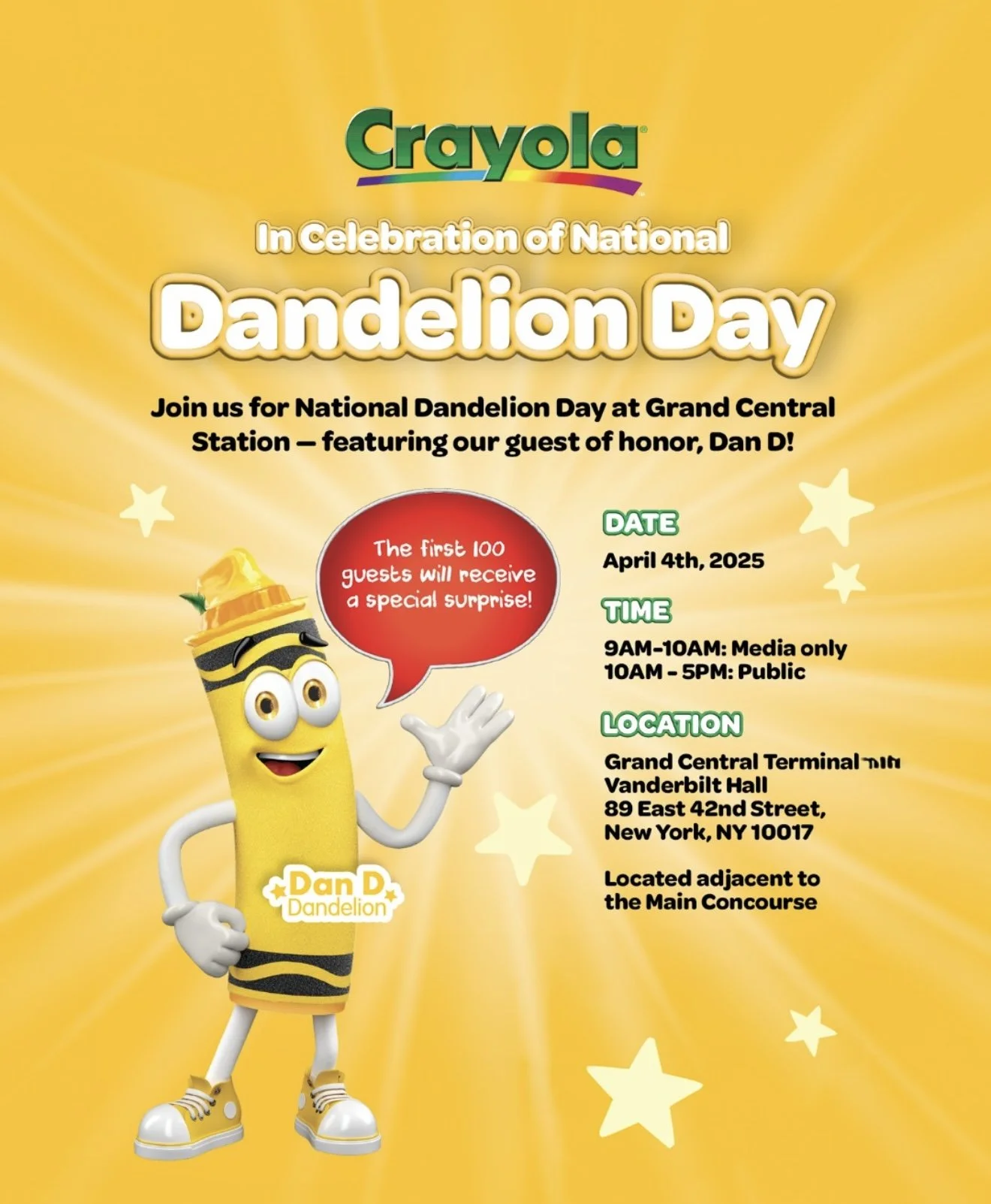 In honor of National Dandelion Day, Crayola is celebrating the return of its beloved Dandelion crayon, lovingly known as Dan D., by hosting a one-day only event in Grand Central Station to commemorate the creative impact Dan D. has had on generations of consumers and show how our favorite things truly never go out of style.