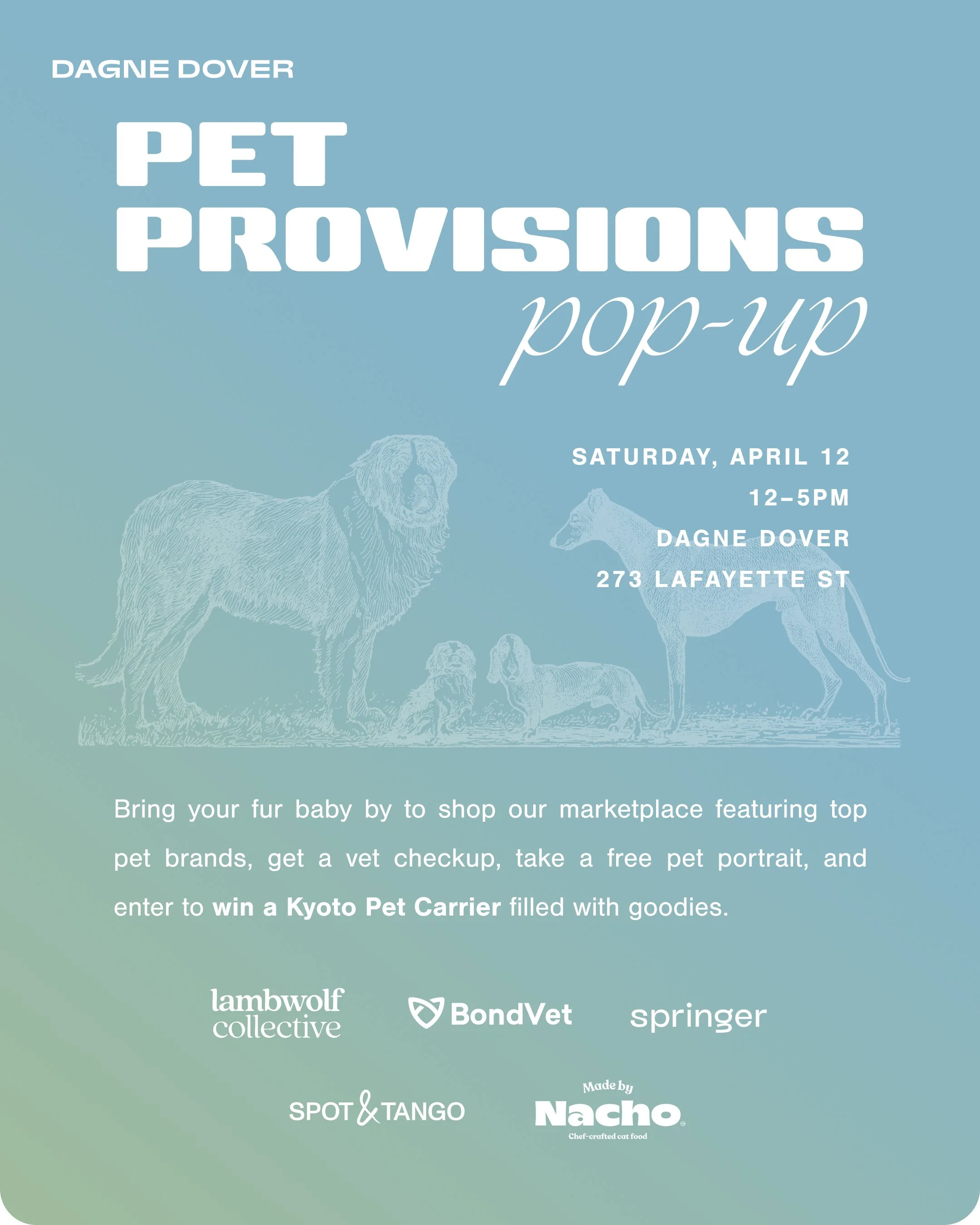 Bring your favorite fur baby to shop Dagne Dover's pet-friendly marketplace featuring awesome products from top pet brands, a vet checkup station, free pet portraits and the chance to enter to win a Dagne Dover Kyoto Pet Carrier filled with goodies!