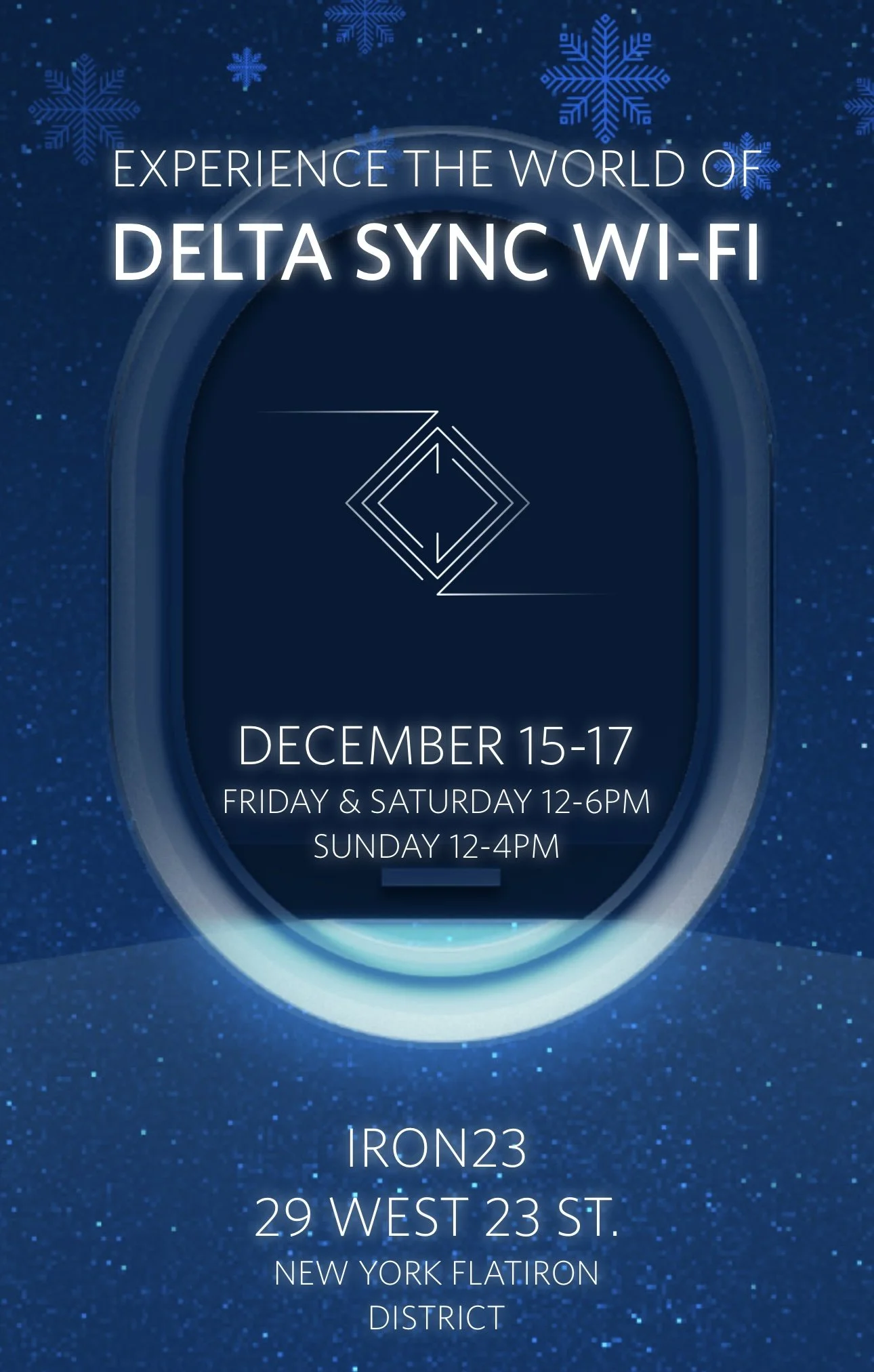 Come visit the Delta Sync WiFi pop-up and experience the perks of being a Delta SkyMiles® Member including exciting surprises, complimentary gifts (for SkyMiles members) and more. Guests can enjoy: