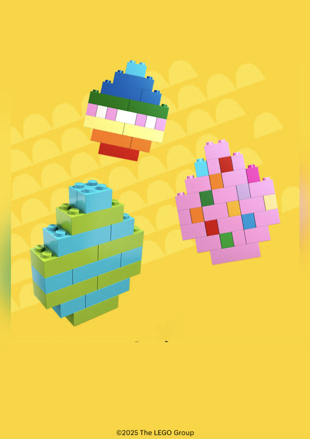 On April 13 from 12-2 PM build your own LEGO Easter Egg in-store and take it home. While supplies last.