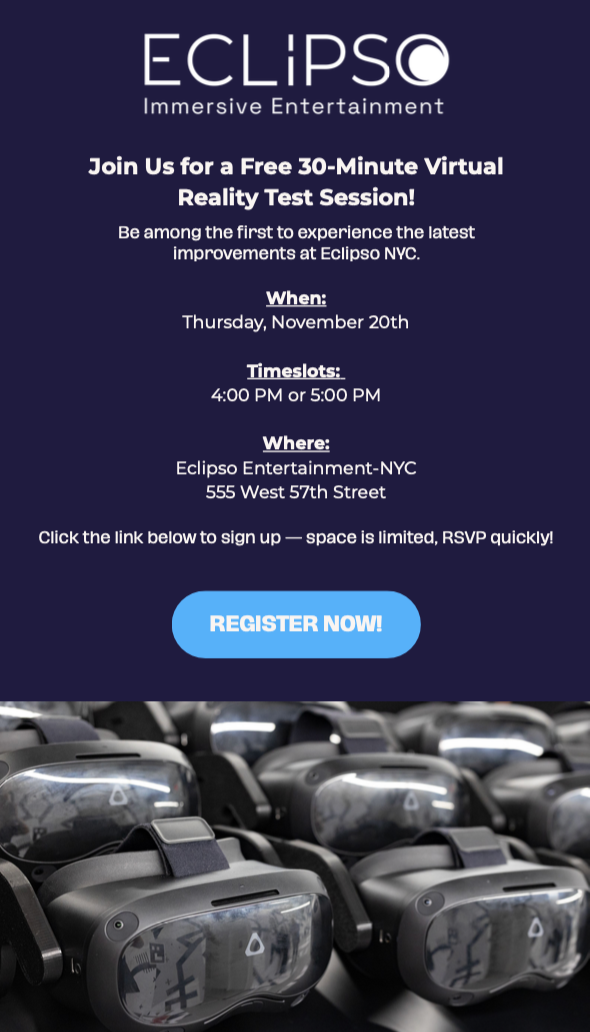 Join Eclipso for a Free 30-Minute Virtual Reality Test Session!