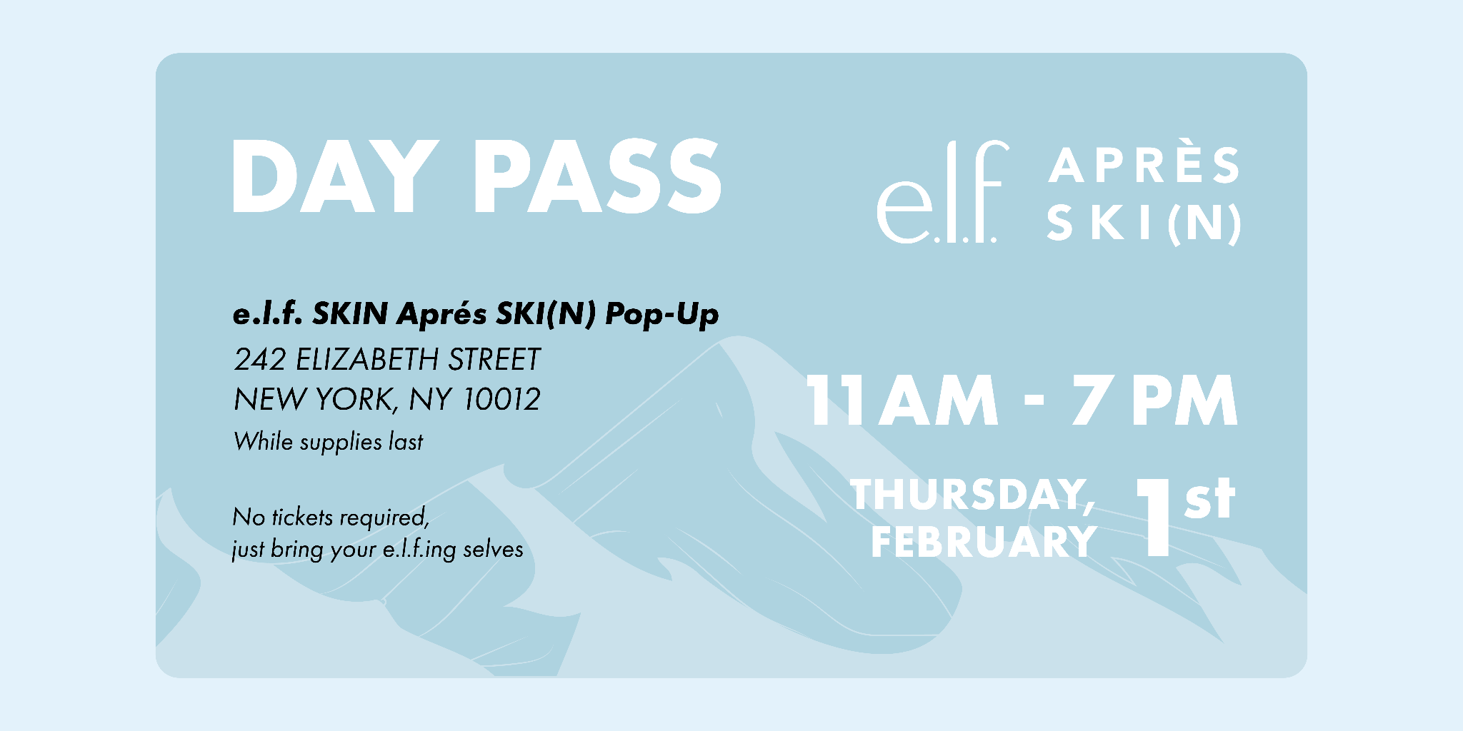 This Thursday, e.l.f. SKIN will be hosting an all-day Aprés SKI(N) Pop-Up in Nolita! Attendees can come cozy up in an e.l.f. SKIN chalet and leave with their peak skin routine.