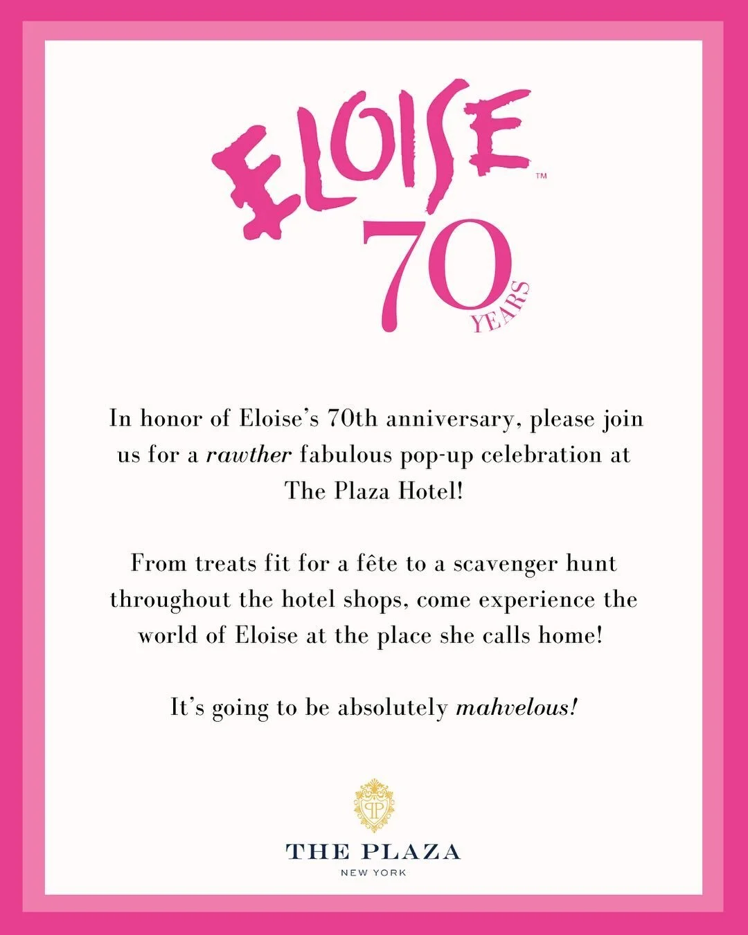 In honor of Eloise’s 70th Anniversary, head to The Plaza Hotel for a fabulous pop-up celebration!