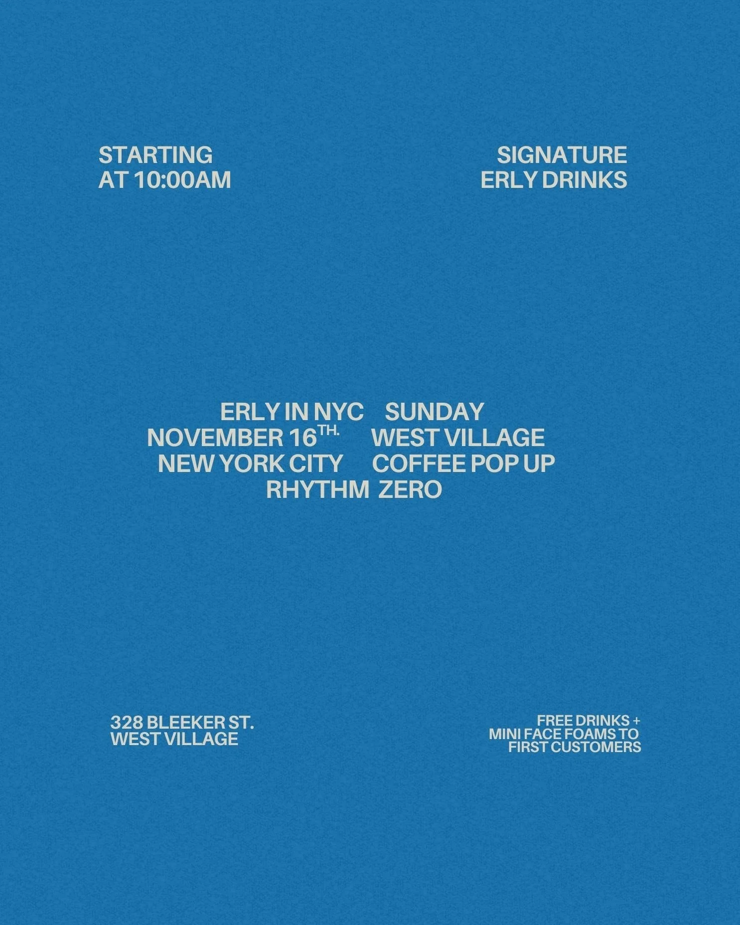 ERLY Skincare is hosting a pop up at Rhythm Zero in the West Village on Sunday, November 16th!