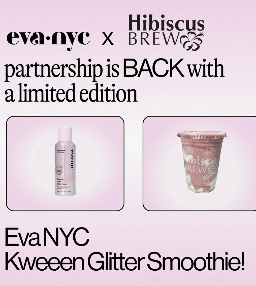 Eva Hair NYC x Hibiscus Brew’s partnership is BACK with a limited edition Eva NYC Kweeen Glitter Smoothie!