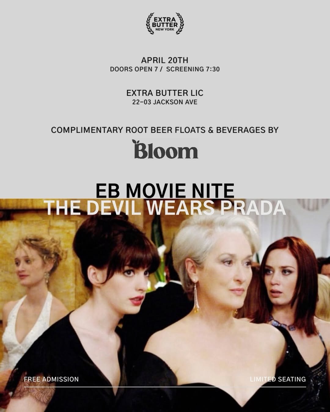 Extra Butter will be screening The Devil Wears Prada for our next Monday Movie Nite, in celebration of the upcoming sequel!
