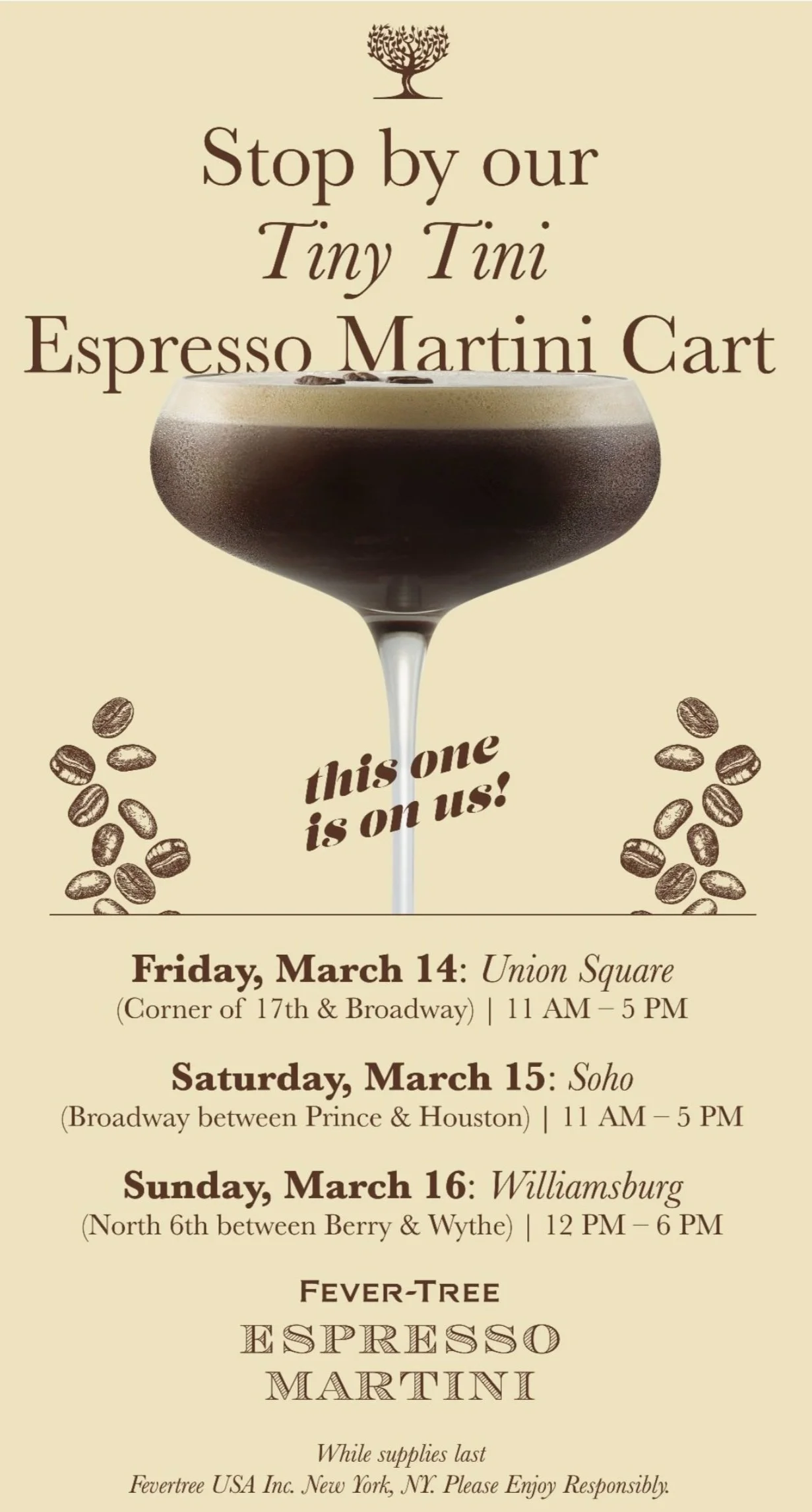 Catch the Espresso Martini Cart roaming NYC this Friday through Sunday for handcrafted zero proof cocktails, complimentary treats, exciting giveaways, and so much more