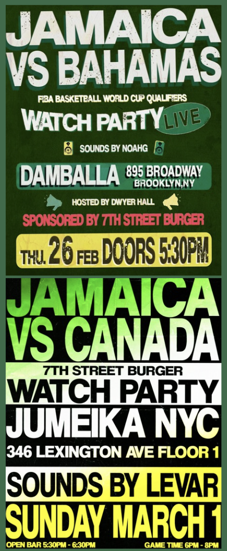 NEW YORK!! 🇯🇲🏀 7th Street Burger will be hosting two watch game parties in New York as a proud sponsor of the Jamaican National Basketball Team!