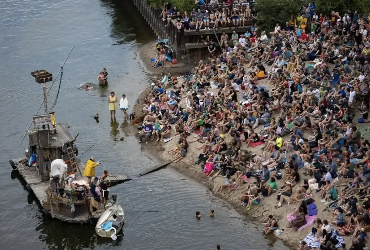 Flotsam is a troupe of musicians, circus performers, and puppeteers who travel on a ramshackle raft giving free performances in waterfront towns. Their goal is to bring some magic and whimsy to the world while helping communities engage with their waterways. Flotsam is a 501(c)(3) non-profit.
