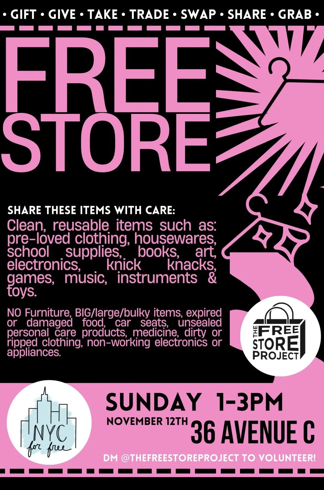 Join NYC for FREE and The Free Store Project for a free store swap event on Sunday November 12th.