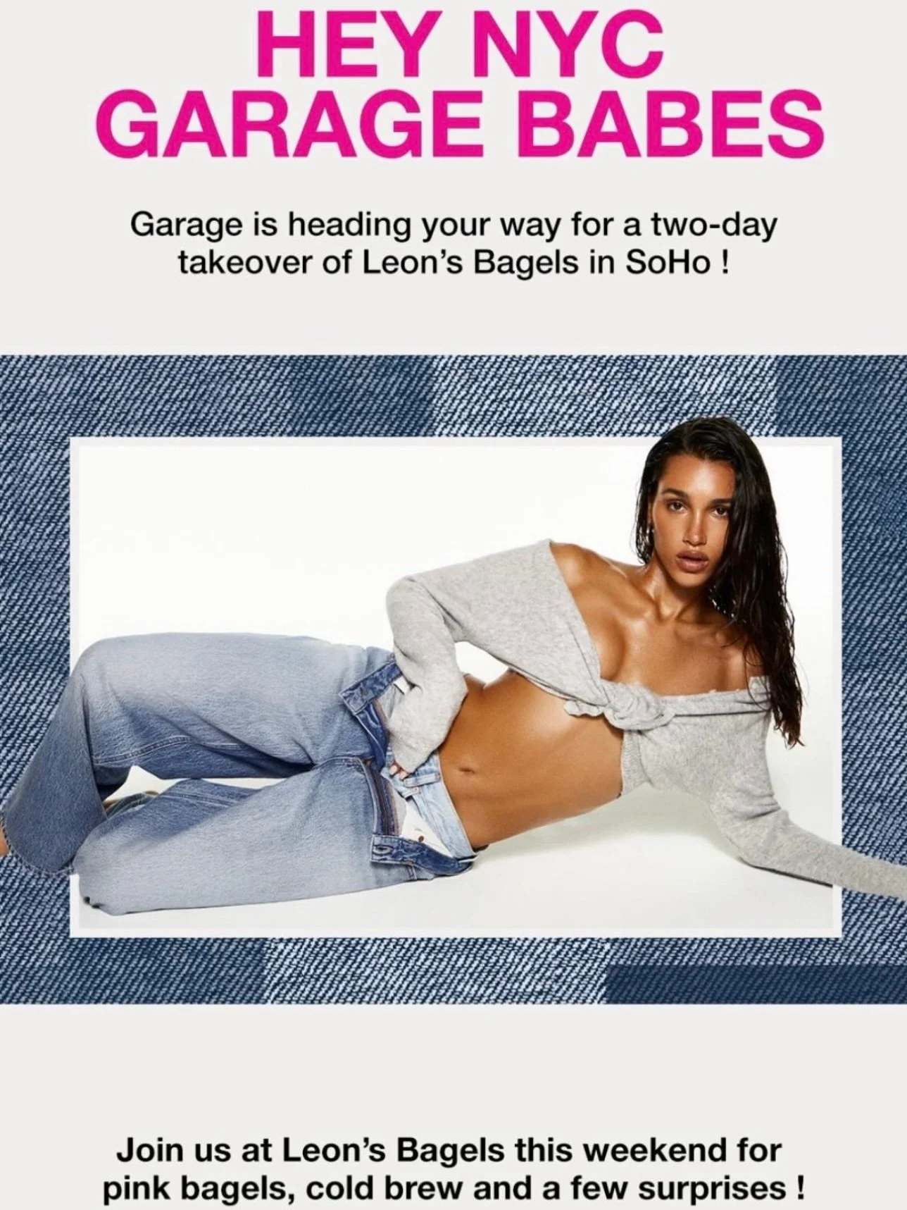 Hey NYC Garage babes! Garage is heading your way for a two-day takeover of Leon's Bagels in SoHo !