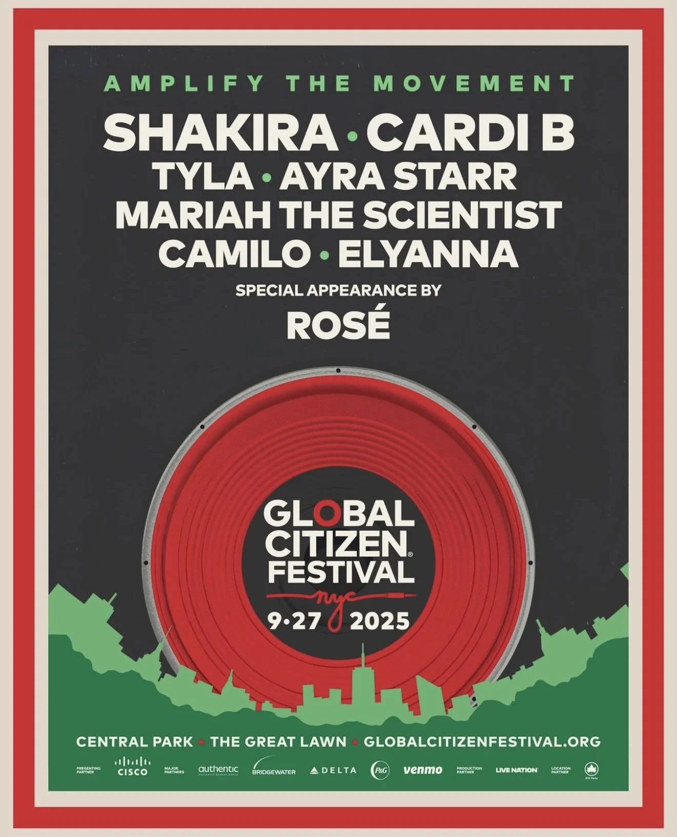 On September 27th, Shakira and Cardi B will headline the Global Citizen Festival, along with ROSÉ, Tyla, Ayra Starr, Mariah the Scientist, Camilo, and Elyanna. Along with host Hugh Jackman, join them in Central Park for a day of music and action.
