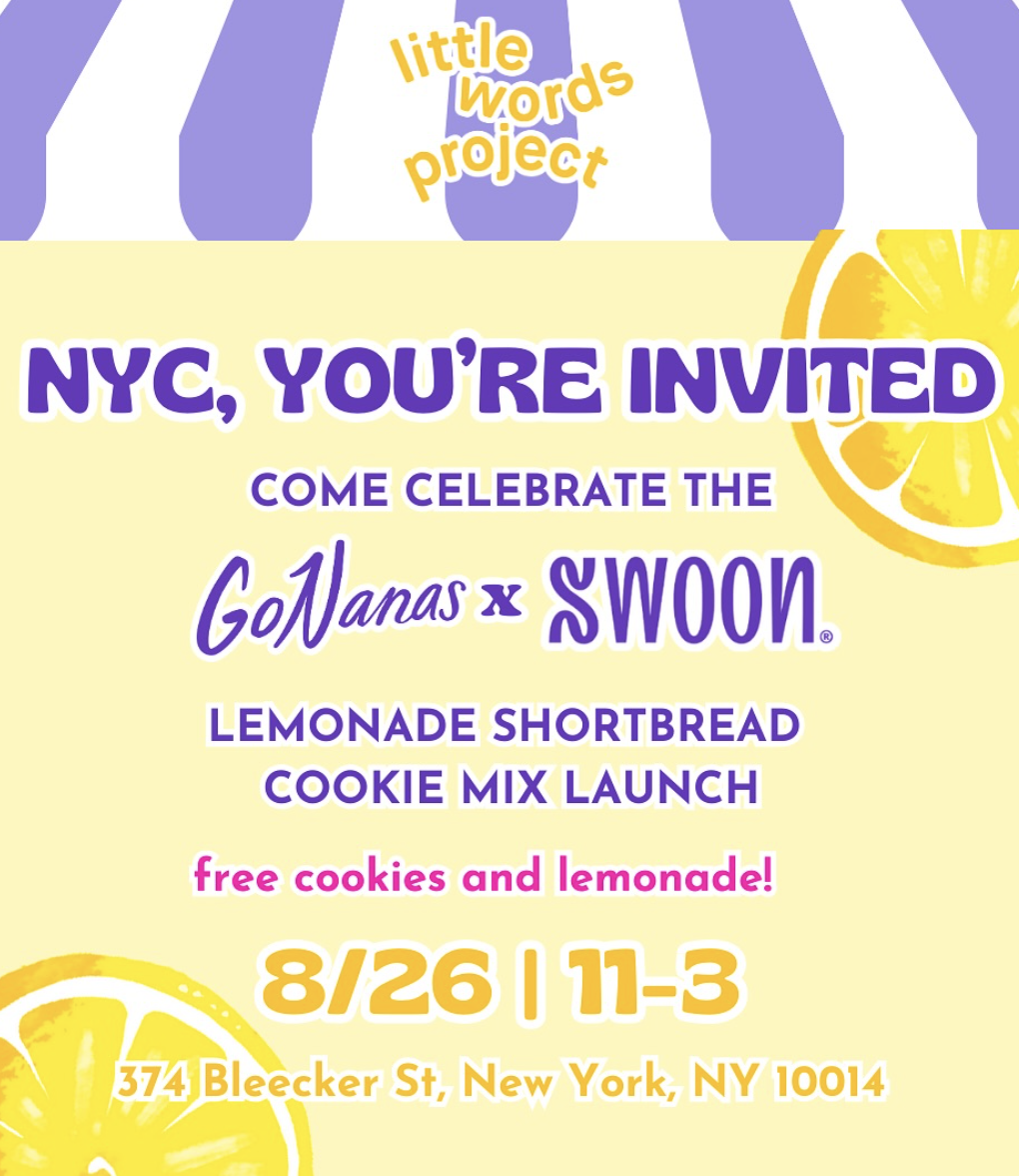 NYC: GoNanas is popping up with free Swoon lemonade and the collab GoNanas cookies outside Little Words Project on Bleecker in West Village Monday from 11am-3pm!