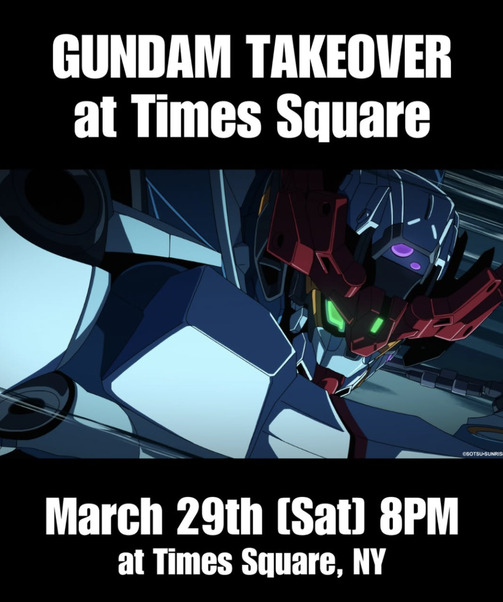 TIMES SQUARE TAKEOVER! Join for the Mobile Suit Gundam GQuuuuuuX takeover in Times Square happening at 8pm on March 29, 2025, in New York City. Celebrate this historic Gundam event with fellow builders and fans around the Gundam community. ποΈπ