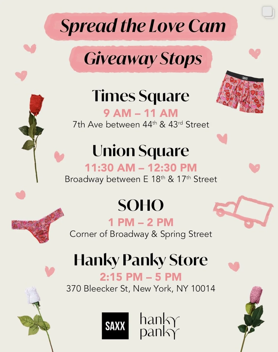 For Valentine’s Day this year, we’re spreading the love with a Hanky Panky x SAXX Underwear love truck 🚚❤️.