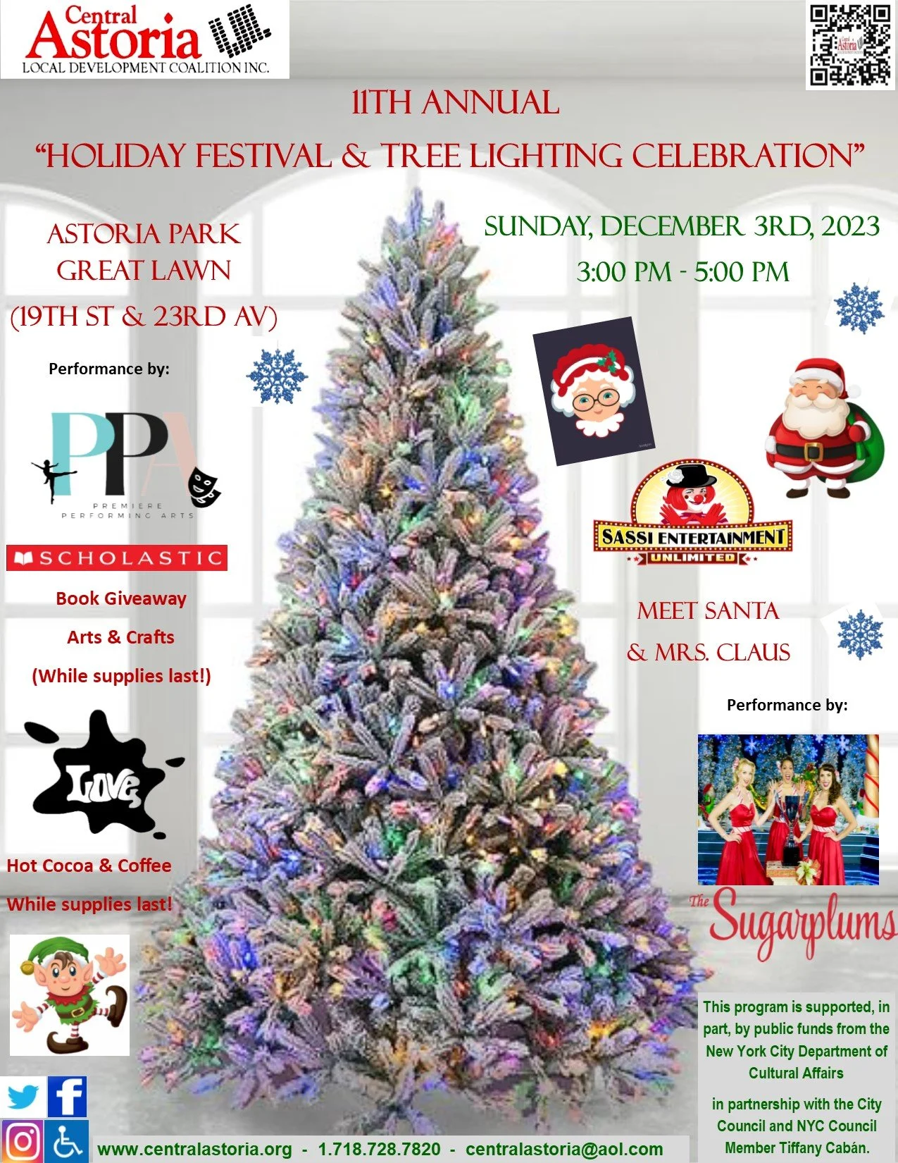 Astoria Park’s 11th Annual Holiday Festival & Tree Lighting Celebration returns this year on Sunday, December 3rd, 2023 , 3:00 – 5:00 pm at The Great Lawn @ Astoria Park (19th Street & 23rd Avenue in Astoria, Queens)