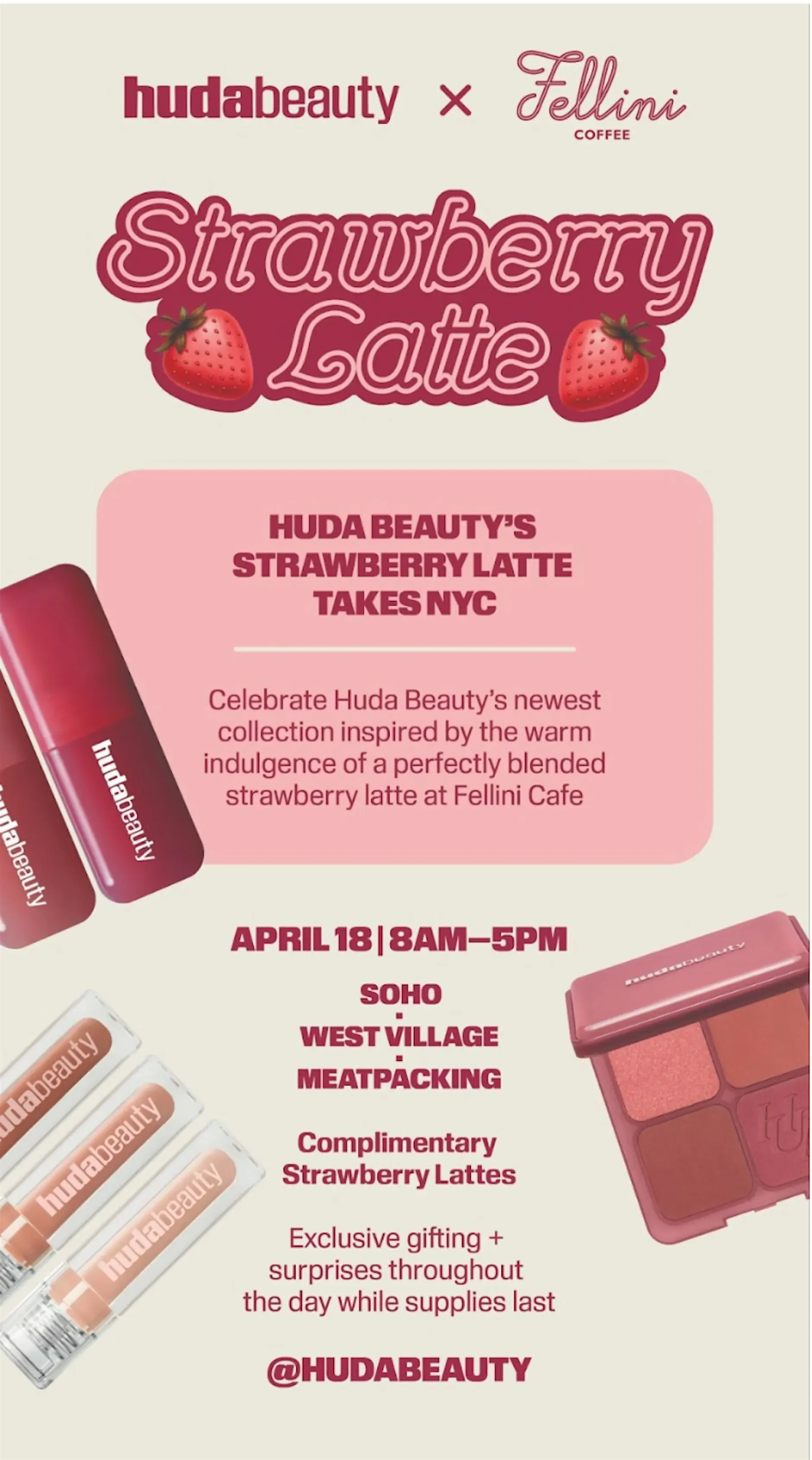 To celebrate the launch of its Strawberry Latte Collection, Huda Beauty is partnering with Fellini Cafe for a one-day, citywide takeover inspired by the resurgence of Y2K café culture.