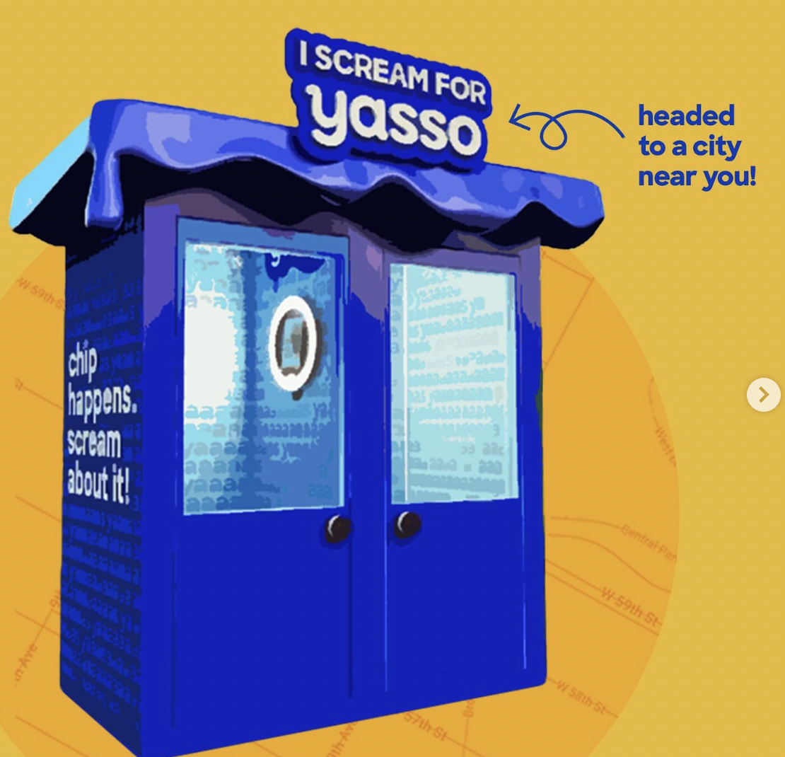 Can't make it in person? Chip happens. Upload a video of yourself screaming to Instagram with the hashtags #ScreamForYasso and #Sweepstakes to be entered to win a 1-YEAR supply of Yasso, and a $2,000 cash prize.