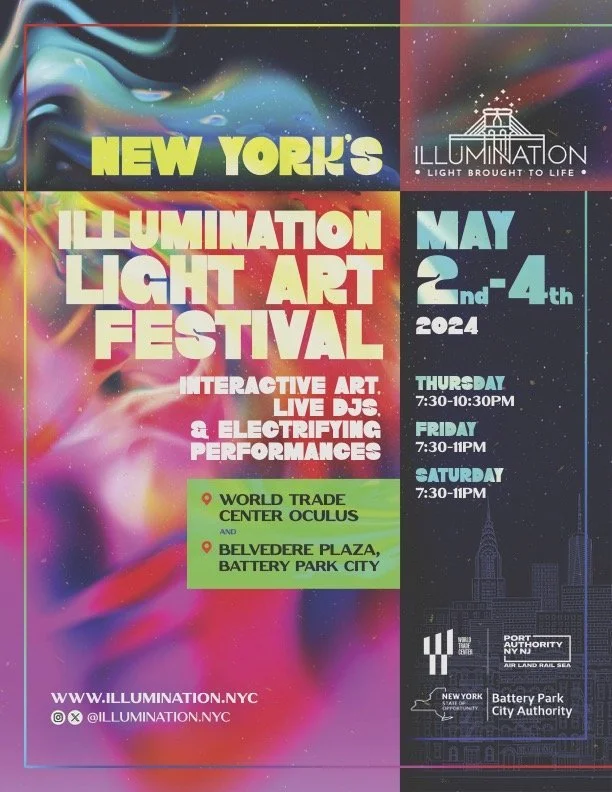 Illumination Light Art Festival is a free Festival of Light in lower Manhattan Thursday, May 2 - Saturday, May 4, 2024