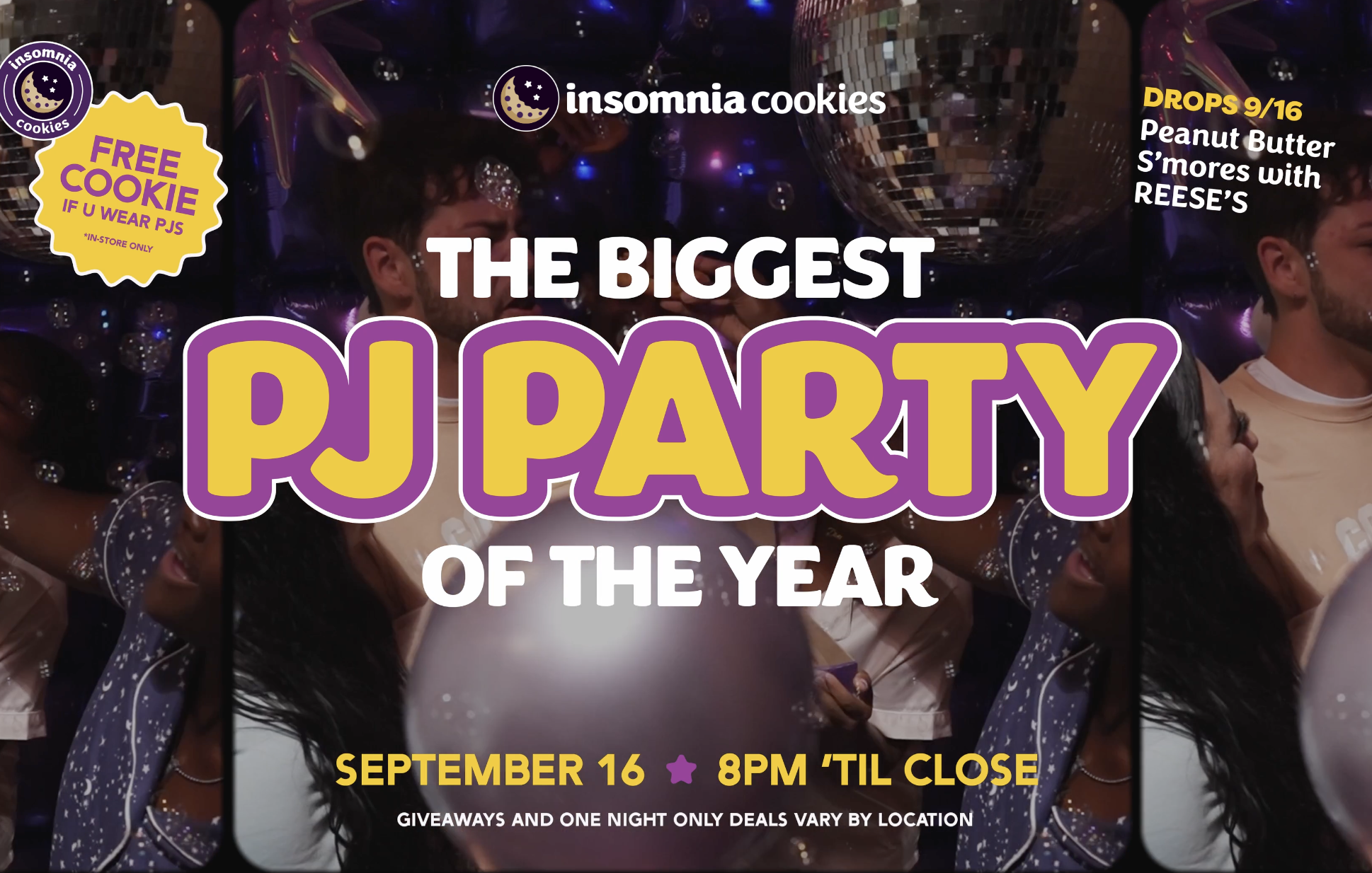 Pull up 2 PJ Party, Sept 16, for a night of treats and deals u canโt miss, including the launch of the Peanut Butter Sโmores Cookie ๐ชฉ