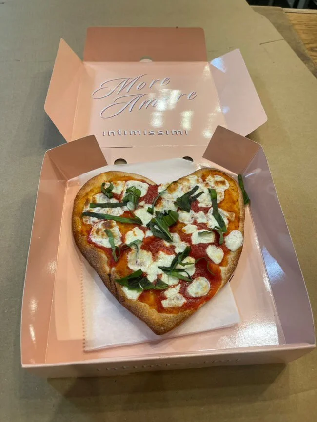 They are giving out free Heart Shaped Pizza today from 10am-8pm (approximately 50 pizzas per hour).