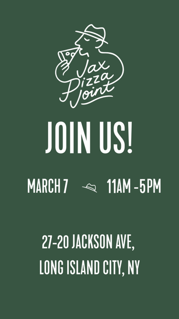 Jax Pizza Joint is excited to announce the grand opening of our new pizzeria this Saturday, in LIC from 11am-5pm!